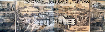 Desde el día siguiente al de su llegada, el señor Porcar ha emprendido nuevas e importantes obras en el ya frondoso parque de su Balneario, que lo embellecerán más y más. Ha dado comienzo a la construcción de dos chalets, primeros de una serie de seis o quizás de ocho, que se levantarán en tan ameno sitio, por si algunas personas que acudan a tomar sus aguas, desean vivir, en familia y separadas del bullicio. Los dos chalets en construcción se llamarán «Villa-Concha». y «Villa-Esperanza». Se me asegura que el señor Porcar tiene en estudio otros varios proyectos, que dada su actividad y carácter emprendedor, abrigo la confianza de que han de ser un hecho, dentro de plazo relativamente corto. Pretende montar un palomar de mensajeras, de las que ya posee varias parejas en Barcelona y Tortosa, con el fin de tener, cuando le convenga, comunicación directa entre ambas poblaciones, por medio de aquellas: continuar la vía, empezada el año anterior, que se titulará calle de la Salud, y por la cual se podrá bajar cómodamente a las mismas fuentes donde nacen las aguas quedan nombre al Balneario; y últimamente, y por ahora, sino encuentra obstáculos que se lo impidan, piensa ensanchar la plaza de toros, que linda con sus propiedades, para darle una cabida de 13 a 14 mil espectadores. Este proyecto, si se realizara, sería de grandísima utilidad para Tortosa en general, pues pudiéndose dar corridas de primor orden, sobre todo en las fiestas de la Cinta, afluiría aquí gran número de forasteros para presenciarlas.